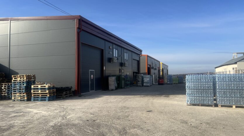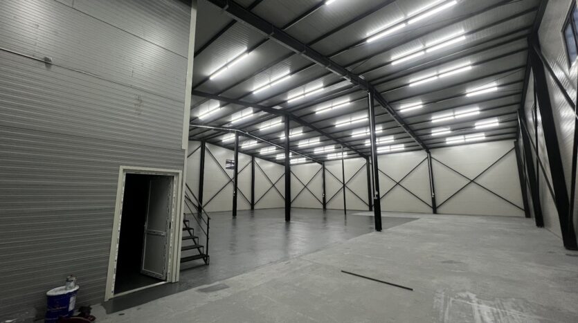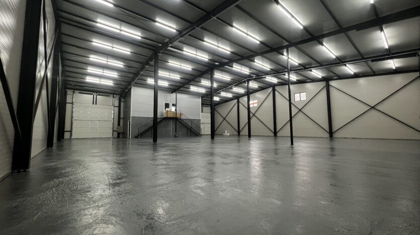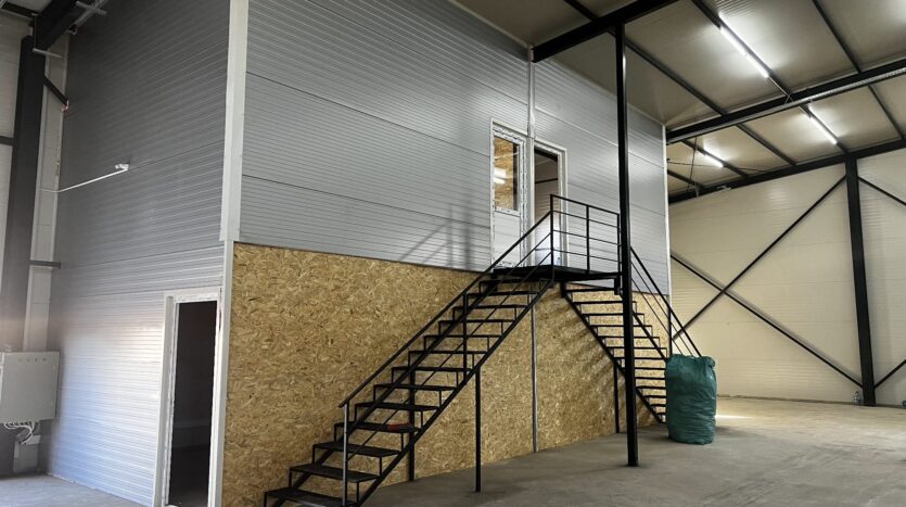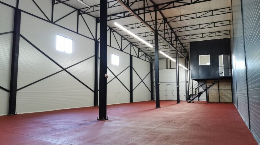 Modern warehouses for warehousing, production or logistics, located in the Avicola-Metro area, with direct access from E583. New buildings made of metal structure and sandwich panels, eaves height of 6.8 m, available in modules of 250 sqm and 590 sqm (compartmentalizable). Facilities: concrete floor, TIR access, fenced land, 4×4 m doors, office space and toilet. Facilities: three-phase electricity, lighting, air conditioning in offices, video surveillance system and full utilities.