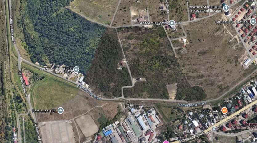 816 sq.m plot of land for sale in Bucium, with access from 3 Fântâni Street. Dimensions 55×15 m, utilities available: water, gas, electricity.